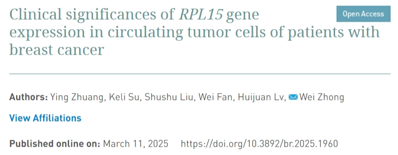 近日,湖北省肿瘤医院乳腺癌临床研究中心钟伟、庄莹教授团队在《Biomedical Reports》上发表的研究,深入探讨了循环肿瘤细胞(CTCs)及其亚型在乳腺癌预后中的关键作用。研究特别指出,间质型CTCs(MCTCs)和RPL15基因表达水平可作为乳腺癌复发和转移的重要预测指标,为疾病的早期干预和个性化治疗提供了新的方向。