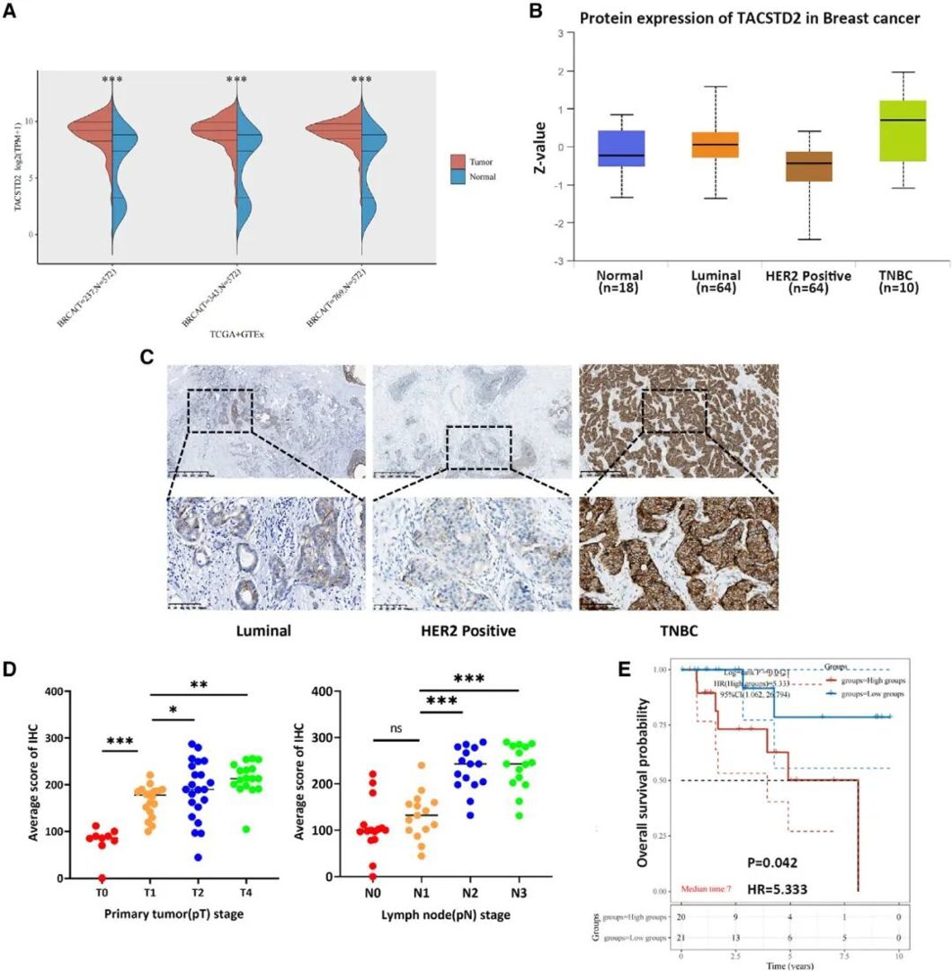 1 TROP2在TNBC中高度表达,与预后不良有关
