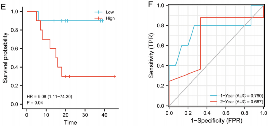 ▲ 单因素和多因素Cox分析survivin+ CTC与预后相关性