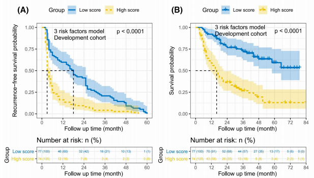 ▲ 术前三因素预测模型(左)和术后四因素预测模型(右)